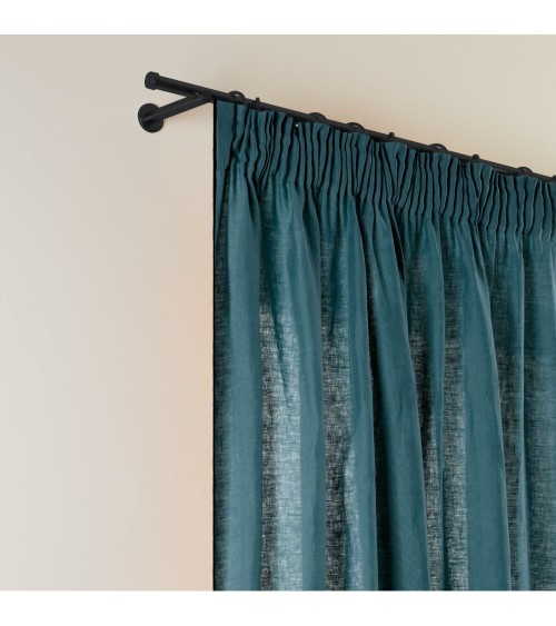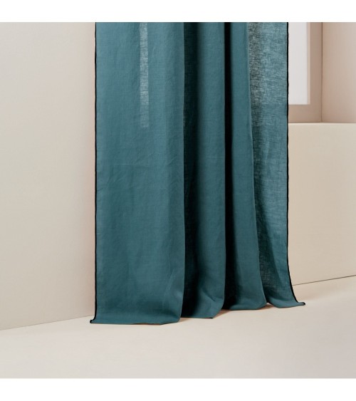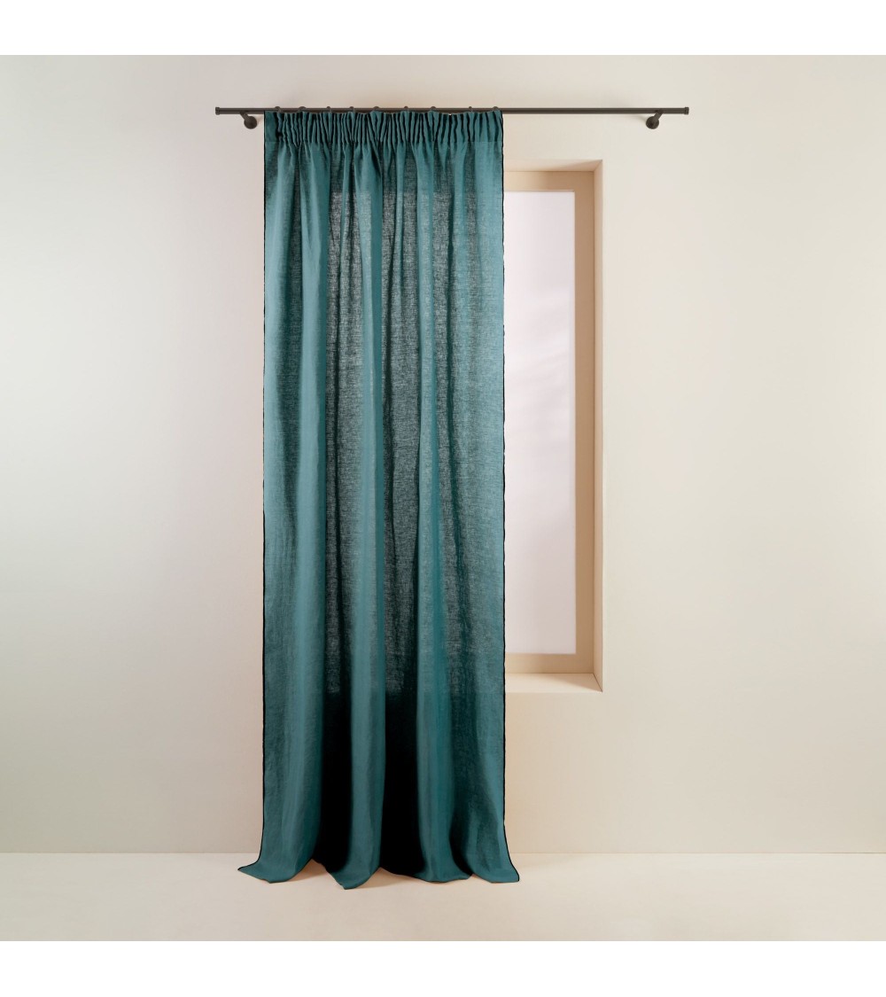 Rideau à galon fronceur 135x350 cm Pétrole et bourdon noir en Lin