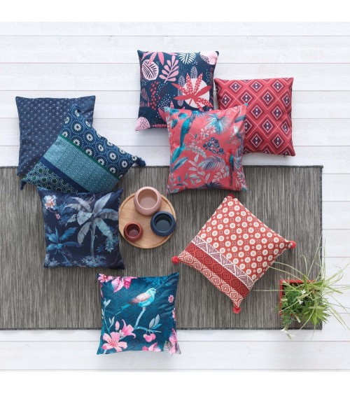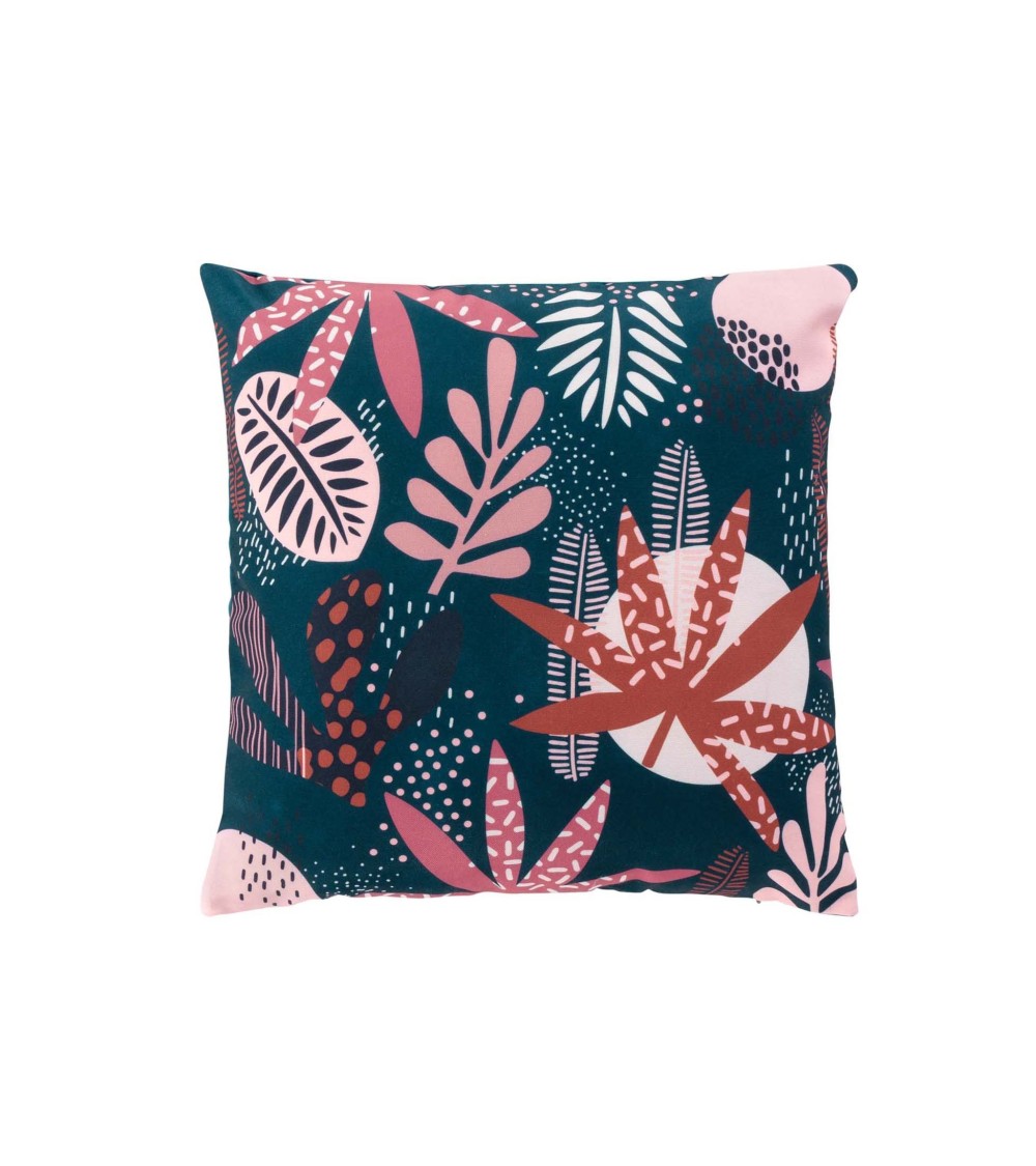 Habillez vos coussins avec cette housse colorée et joviale. Les motifs naturels apporteront de la bonne humeur à votre intérieur. La face avant est imprimée tandis que la face arrière est unie et en coton. Une fermeture zippée vous permettra de la retirer facilement. Lavable en machine à 30°C. Caractéristiques : Dimensions : 40 x 40 cm. Coloris : bleu. Composition : recto : 100% polyester, verso : 76% coton et 24% viscose. Finition : fermeture zippée. Lavage : 30°C.