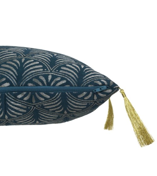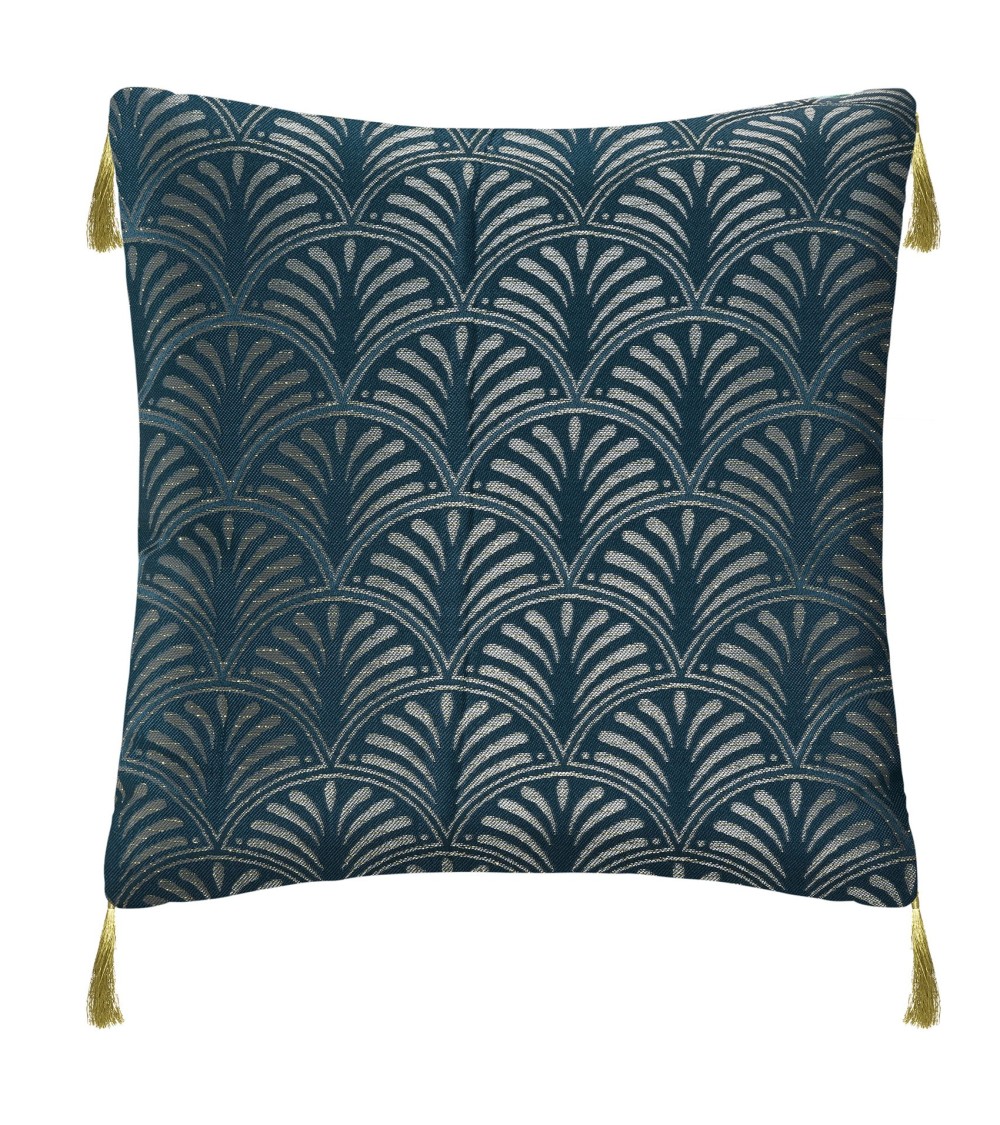 Apportez une touche d'élégance dans votre intérieur avec ce magnifique coussin carré jacquard lurex déco coloris bleu canard de 40x40 cm de côté. Ce coussin est déhoussable, il possède 4 pompons or.Caractéristiques du coussin jacquard lurex 40x40 Art déco canard :Composition : 100% polyesterCoussin déhoussablePoids : 340 g