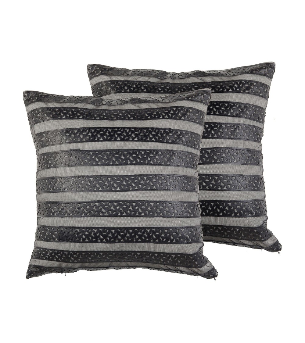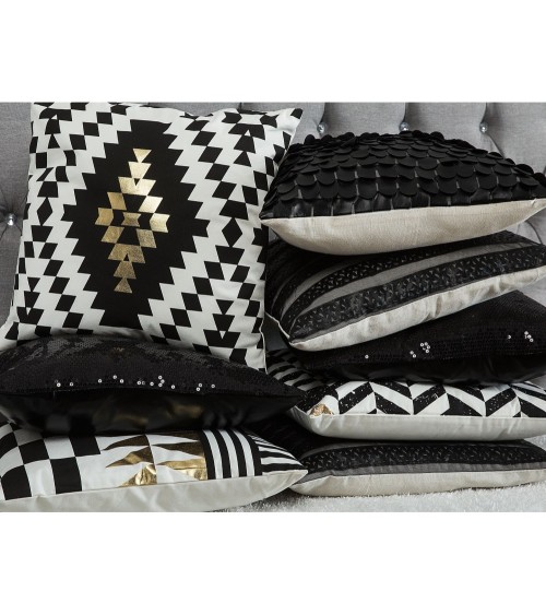 2 coussins décoratifs noirs et gris avec ornaments en cuir PU. Apportez une touche originale à votre pièce. Ces coussins aux motifs à rayures noires et grise et ornaments en cuir PU noir offriront une ambiance moderne et élégante à votre pièce. Les taies de ces coussins déco sont déhoussables, vous pourrez ainsi retirer les housses et en mettre d'autres au format 45 x 45 cm, selon vos besoins.Détails: Type de produit: Coussin décoratif Style: Glamour Couleur principale: Noir Nuance: Gris foncé Type de matière: Tissu Matière principale: Polyester Matière du rembourrage: Polyester Composition de la matière: 100% Polyester Forme: Carré Fabriqué à la main: Non Motif: À rayure Dimensions: Profondeur: 45 cm Largeur: 45 cm Hauteur: 12 cm Poids du rembourrage: 350 kg Poids: 0.6 kg L`offre inclue: 2 x Oreiller Caractéristiques clés: Crée une ambiance agréable, Décoratif et fonctionnel, Matières robustes faciles à entretenir, Housses amovibles Informations d`assemblage: Ne nécessite pas d'assemblage Informations supplémentaires: Le coussin est scellé sous vide pour le transport. Veuillez retirer le coussin de l'emballage et le laisser reposer pendant 24 heures jusqu'à ce qu'il atteigne sa pleine densité. Conseils de maintenance: Polyester: 1.Lavage à la main uniquement. Utilisez de l'eau froide et un nettoyant doux 2.Ne pas sécher en machine et ne pas repasser.