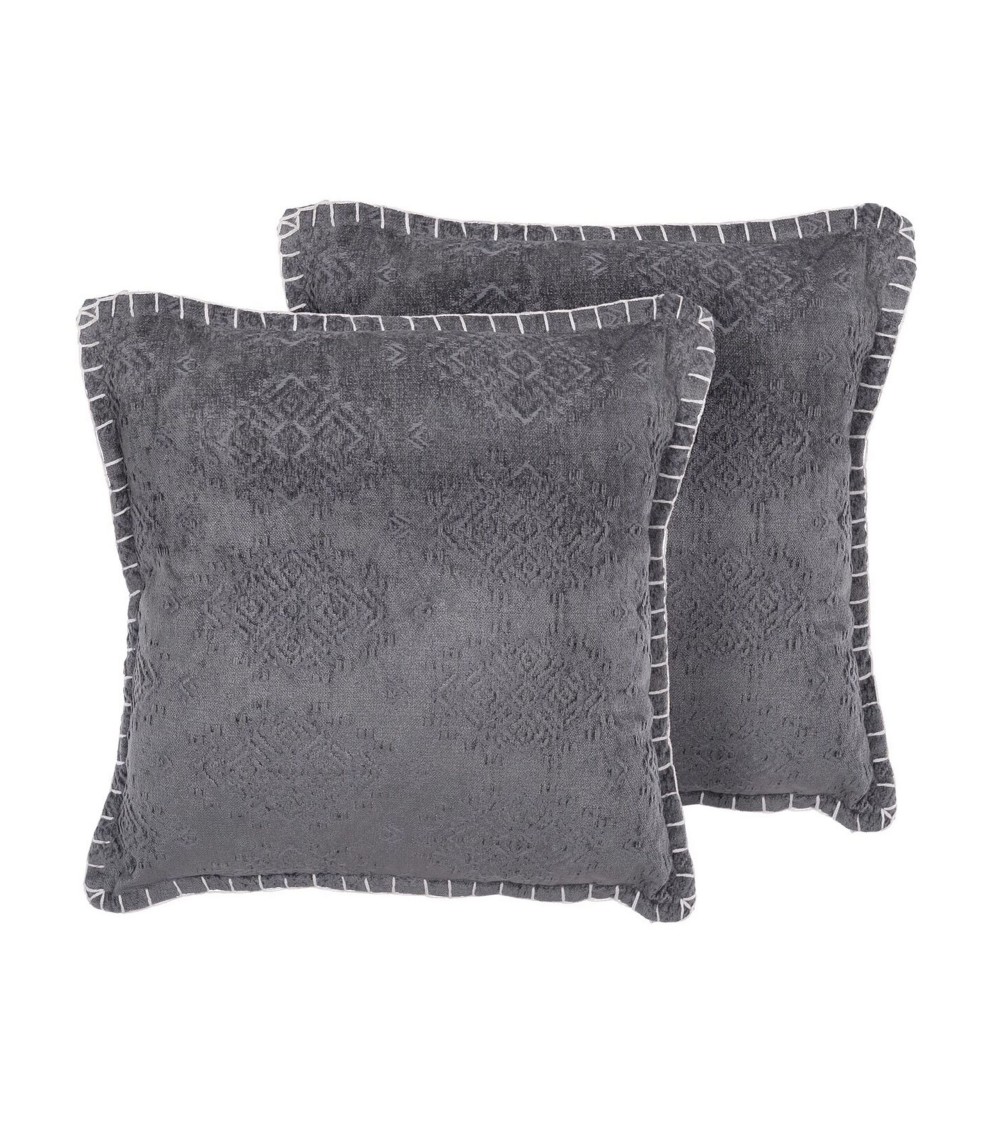 2 coussins décoratifs modernes en tissu gris. Ajoutez une touche de gaieté à votre pièce ! Ces 2 coussins décoratifs gris, apporteront de la joie et de la bonne humeur dans votre intérieur. Les housses de ces jolis coussins déco sont amovibles et lavables en machine, et si jamais vous voulez changer de style il vous suffira juste de retirer les taies et d'en enfiler d'autres au format 45 x 45 cm.Détails: Type de produit: Coussin décoratif Style: Rustique Couleur principale: Gris Nuance: Gris foncé Type de matière: Tissu Matière principale: Soie artificielle Matière secondaire: Polypropylène Matière du rembourrage: Polyester Composition de la matière: 80% Viscose Forme: Carré Fabriqué à la main: Non Motif: Unicolore Dimensions: Profondeur: 45 cm Largeur: 45 cm Hauteur: 12 cm Poids du rembourrage: 350 kg Poids: 0.6 kg L`offre inclue: 2 x Oreiller Caractéristiques clés: Solution parfaite pour la chambre et le salon, Elément élégant pour l'intérieur, Tissu doux, agréable au toucher, Housses amovibles Informations d`assemblage: Ne nécessite pas d'assemblage Informations supplémentaires: Le coussin est scellé sous vide pour le transport. Veuillez retirer le coussin de l'emballage et le laisser reposer pendant 24 heures jusqu'à ce qu'il atteigne sa pleine densité. Conseils de maintenance: Soie artificielle: 1.Lavage à la main uniquement. Utilisez de l'eau froide et un nettoyant doux 2.Ne pas sécher en machine et ne pas repasser.