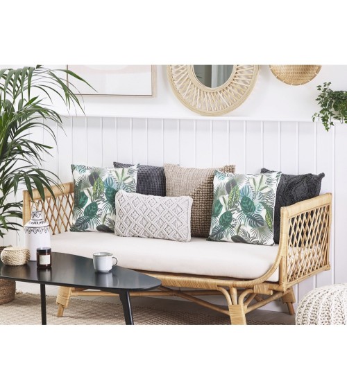 Coussins décoratifs avec motif plantes exotiques. Un bon moyen de relooker son intérieur sans trop d'effort est de se doter de nouveaux coussins. L'imprimé à motif de feuilles s'adapte parfaitement aux compositions modernes et bohèmes. Enfin, les housses en polyester garantissent une durabilité à toute épreuve.Détails: Type de produit: Coussin décoratif Style: Boho Couleur principale: Vert Type de matière: Tissu Matière principale: Polyester Matière secondaire: Coton Matière du rembourrage: Polyester Composition de la matière: 80 % Polyester Forme: Carré Fabriqué à la main: Non Motif: Motif de feuille Dimensions: Profondeur: 45 cm Largeur: 45 cm Hauteur: 12 cm Poids du rembourrage: 400 kg Poids: 0.6 kg L`offre inclue: 2 x Oreiller Caractéristiques clés: Design moderne, S'adapte à différents types d'intérieurs, Jolies couleurs vives, Matières robustes faciles à entretenir, Housses amovibles Informations d`assemblage: Ne nécessite pas d'assemblage Informations supplémentaires: Le coussin est scellé sous vide pour le transport. Veuillez retirer le coussin de l'emballage et le laisser reposer pendant 24 heures jusqu'à ce qu'il atteigne sa pleine densité. Conseils de maintenance: Polyester: 1.Ne pas sécher en machine et ne pas repasser 2.Lavez à la main ou sélectionnez un cycle de lavage délicat (30 °C). Suivez en premier lieu les instructions du fabricant sur l'étiquette.