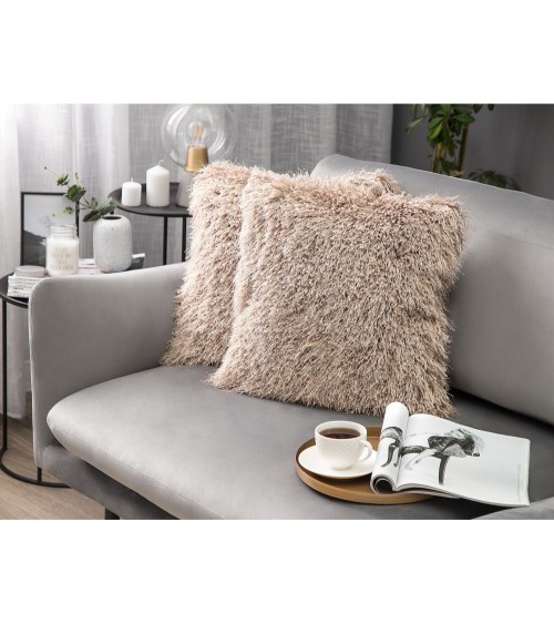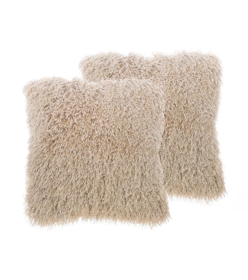 2 coussins décoratifs shaggy beiges. Ces coussins design vous séduiront avec leur aspect romantique. Les taies shaggy ultra douces et moelleuses apporteront une touche très cosy à votre intérieur. Ces superbes coussins décoratifs trouveront sûrement leur place sur un canapé aux tons pastels ou comme élément déco de votre lit.Détails: Type de produit: Coussin décoratif Style: Glamour Couleur principale: Beige Type de matière: Tissu Matière principale: Polyester Matière du rembourrage: Polyester Composition de la matière: 100% Polyester Forme: Carré Fabriqué à la main: Non Motif: Unicolore Dimensions: Profondeur: 45 cm Largeur: 45 cm Hauteur: 12 cm Poids du rembourrage: 400 kg Poids: 0.5 kg L`offre inclue: 2 x Oreiller Caractéristiques clés: Incroyablement doux, Style chic, Matières robustes faciles à entretenir, De haute qualité, Housses amovibles Informations d`assemblage: Ne nécessite pas d'assemblage Informations supplémentaires: Le coussin est scellé sous vide pour le transport. Veuillez retirer le coussin de l'emballage et le laisser reposer pendant 24 heures jusqu'à ce qu'il atteigne sa pleine densité. Conseils de maintenance: Polyester: 1.Ne pas sécher en machine et ne pas repasser 2.Doit être nettoyé à sec par un professionnel et ne doit pas être lavé.