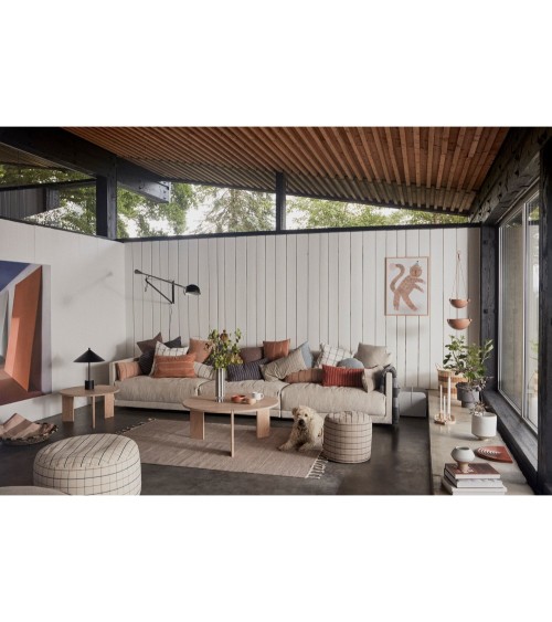 Avec sa forme organique, le coussin Kyoto et rayé de gris est parfait aussi bien pour le canapé que comme coussin d'assise. La série Kyoto se caractérise par une expression graphique. La série Kyoto est réalisée avec une surface unique et texturée. Le coussin est tissé en coton biologique et est rempli de duvet et de plumes. Nous recommandons de laver la housse du coussin en machine à 30° - laver à l'envers.Qualité : 100% coton organiqueDimensions : Diamètre 40 cm