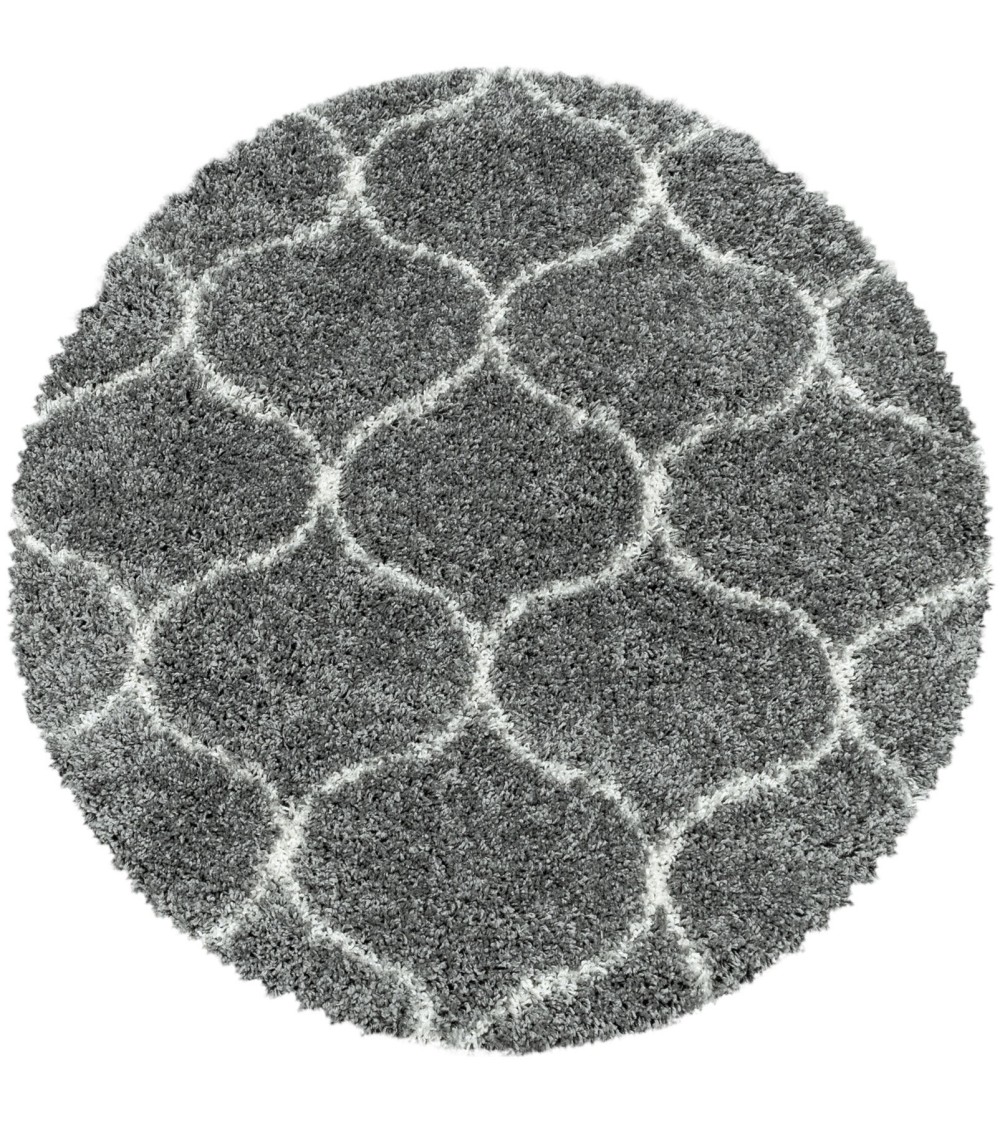 Tapis rond à poils longs et motifs alhambra gris 120x120cm