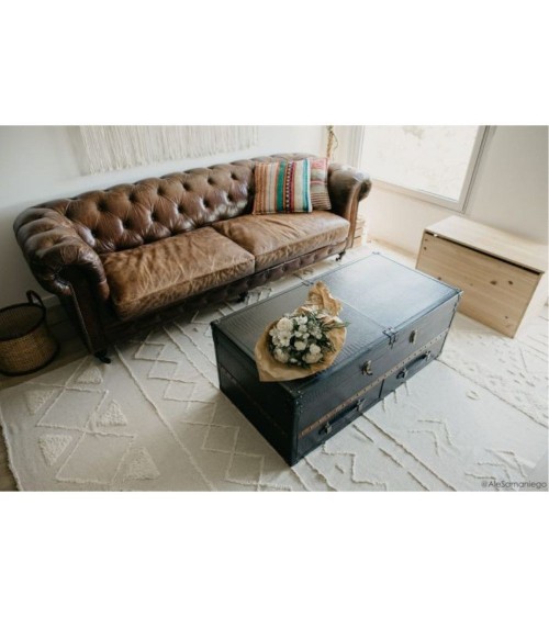 Ce très joli tapis rectangulaire arbore de belles teintes chaleurseus. De très beaux motifs ethniques apparaissent en relief sur ce magnifique tapis en toile de coton. Des petits pompons apportent leur lot d'originalité à chaque coin du tapis. Ses dimensions (170x240cm) permettent d'obtenir une grande surface.Ce ravissant tapis rug Tribu pourra être installé au pied du lit de votre enfant. Ses couleurs permettront d'ajouter de la chaleur et un esprit cocooning à la pièce.Fabriqué à la mains.Lavable en machine à 30°C.Largeur : 170 cm.Longueur : 240 cm.Poids : 3.45 Kg.