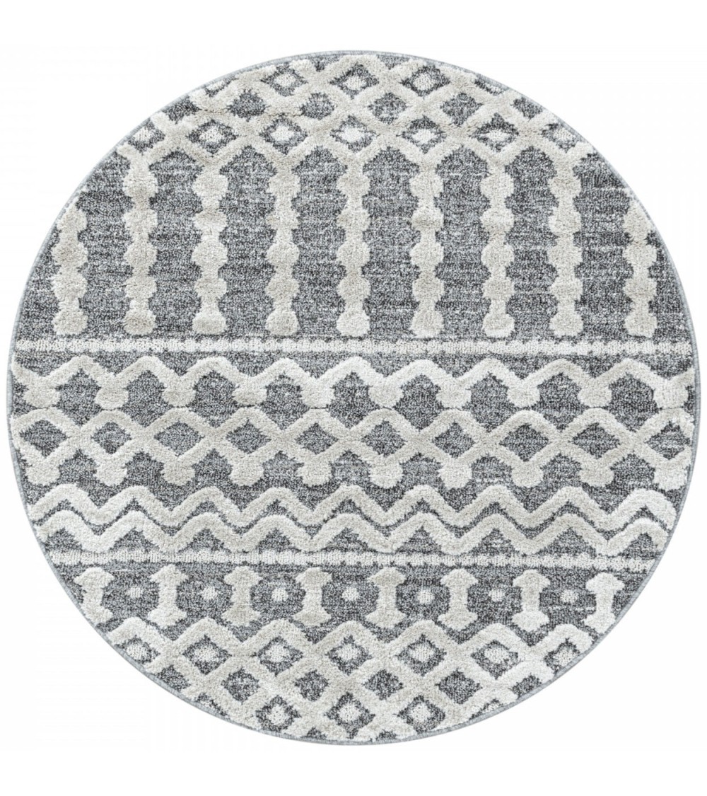 Tapis bohème rond à relief gris et blanc 200x200cm