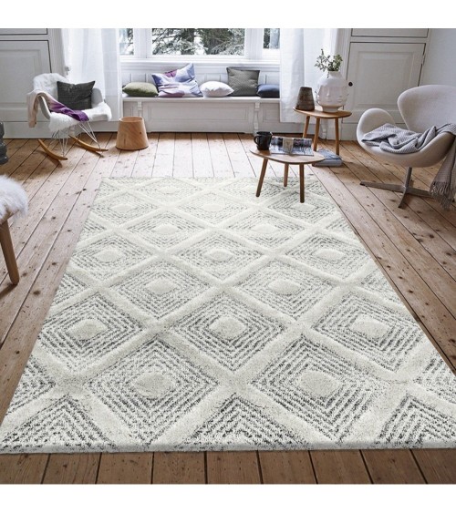 BOHEME, Tapis chic et haut de gamme. Effet laineux en matière de qualité supérieure et tissage à haute densité en relief pour un rendu chic et un toucher doux Deux hauteurs de fils : 20mm et 10mm bouclé en relief.Très résistant et haute densité de 2150grammes/m ? Style : BerbèreEffet : ReliefMatière : 100% PolypropylèneMatière du dessous : 100% Coton RecycléHauteur de fils : 20mm et 10mm Boucles coupéesDensité : 2150 grammes/m2Entretien : Nettoyage facile, aspirateur & chiffon humide Conçu en EuropeNormes et Label STANDARD 100 by OEKO-TEXEnroulé et emballé, votre tapis arrive à destination en toute sécurité