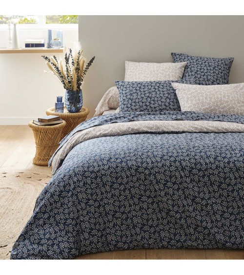 Taie d'oreiller en lyocell bleu et beige 50x70