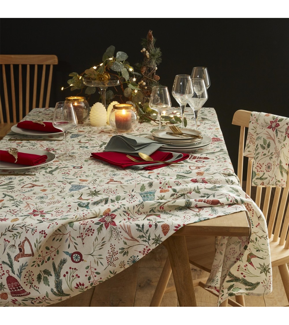 Cette nappe en lin imprimée sur fond blanc vous plongera dans l'univers féérique et magique des fêtes de fin d'année.