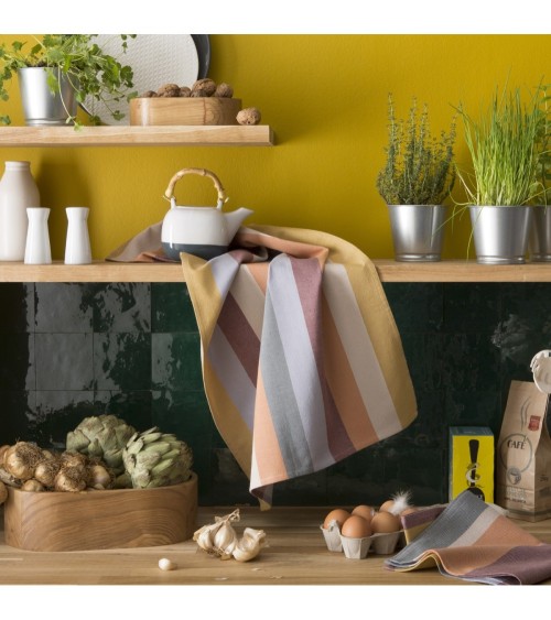 Le torchon Gaspard en jacquard de coton apportera une touche d'originalité par son jeu de couleurs dans votre cuisine