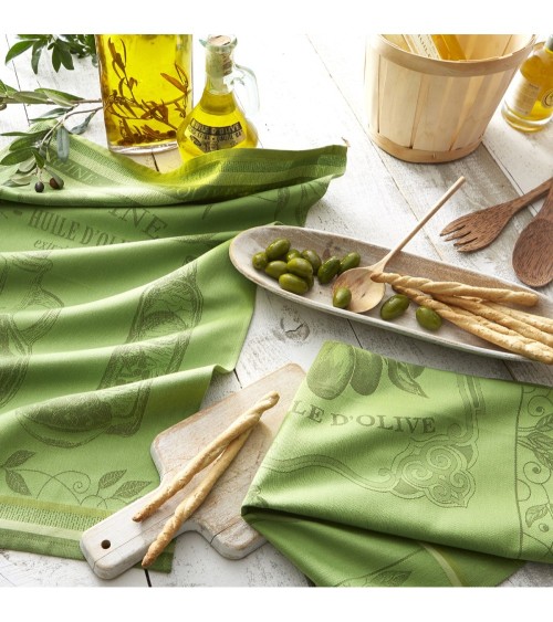 Le torchon Huile Surfine en jacquard de coton représente un classique de la cuisine, l'huile d'olive. L'ingrédient est emblématique de la cuisine française