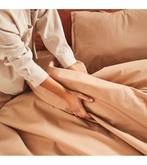 La housse de couette unie est soulignée d'un point de bourdon serré ton sur ton. La finition bouteille permet de rabattre le bout de la housse de couette en dessous du matelas afin d'en assurer son bon maintien.