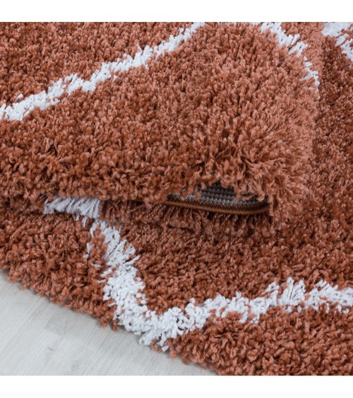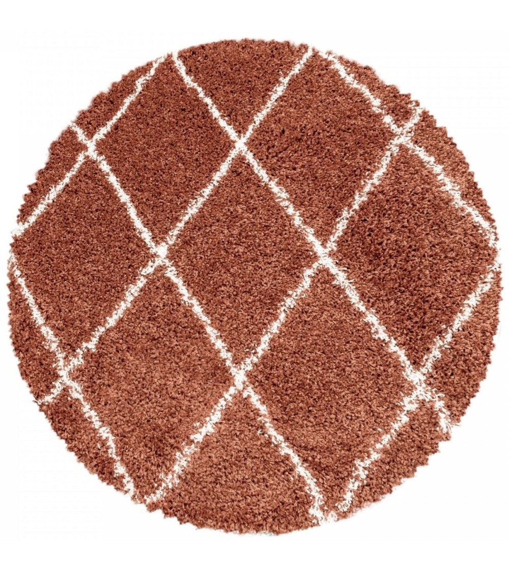 Tapis rond de style géométrique terracotta et blanc 200x200cm