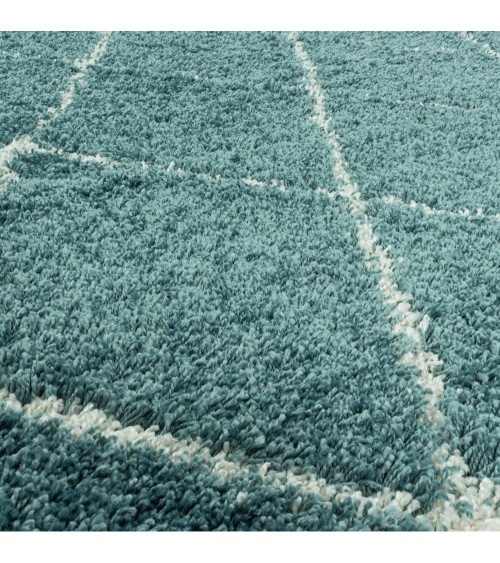 Tapis BERBERE Bleu et Ivoire Tout doux et moelleux ! Poils longs et motifs Berbères Le style Berbère ne cesse de séduire Il apporte douceur et sérénité à votre intérieur Ce tapis aux motifs losanges et aux couleurs douces s'accordera parfaitement à votre intérieur Style : Berbère Matière : 100% Polypropylène Matière du dessous : Jute antidérapante Hauteur de fils : 30mm Densité : 2100 grammes/m2 Conçu en Europe Normes et Label STANDARD 100 by OEKO-TEXEnroulé et emballé, votre tapis arrive à destination en toute sécurité