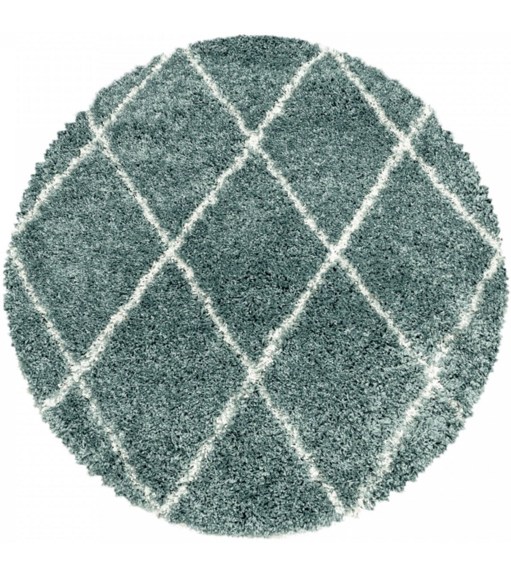 Tapis rond de style géométrique turquoise et blanc 160x160cm