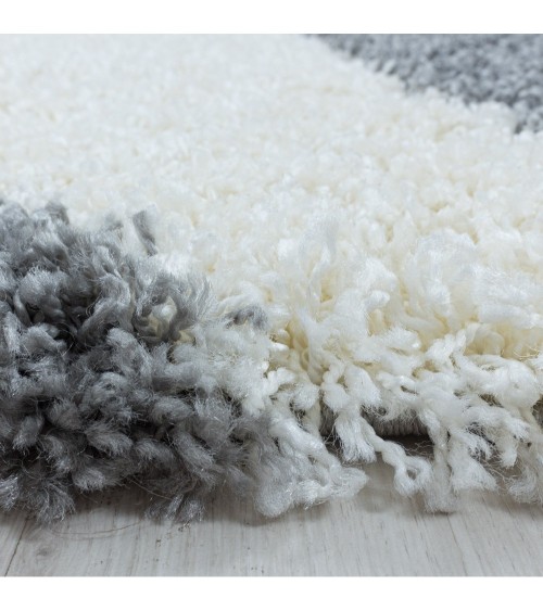 TRIANGLE - Tapis à poils longs et motifs Géométrique - Gris et Blanc Style: SHAGGY Géométrique Forme: Rectangle Couleur: Gris et Blanc Hauteur: 30mm Matériaux: 100% Polypropylène Entretien: Nettoyage Facile, aspirateur et chiffon humide Eco-responsable - Label OEKO-TEX 100