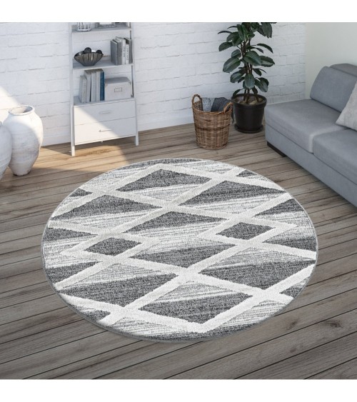 Tapis bohème rond à relief blanc et gris 120x120cm