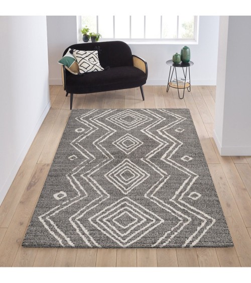 Tapis bohème effet laine anthracite et crème 120x170cm