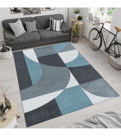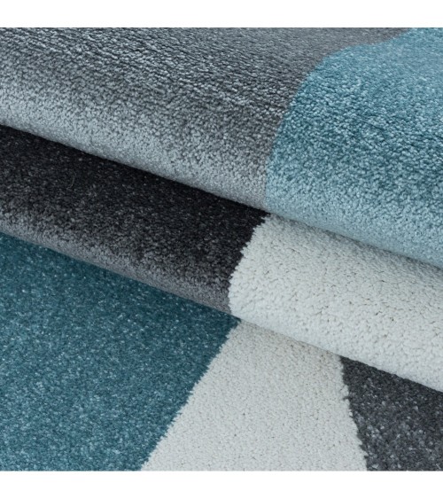 Tapis PICASSO à motifs Géométriques Style: Géométrique Forme: Rectangle Couleur: Bleu Hauteur: 10mm Matériaux: 100% Polypropylène Frisé Entretien: Nettoyage Facile, aspirateur & chiffon humide