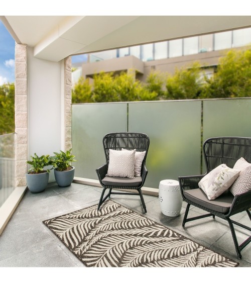 Inspiré par la nature, le tapis indoor outdoor de la collection Samba réinterprète la feuille emblématique de palmier d'une manière moderne et graphique.Les tapis modernes motifs feuille de palmier peuvent être utilisés pour mettre en valeur n'importe quelle pièce de votre maison. Avec son design unique, ce tapis feuille de palmier apportera un look moderne et naturel à votre maison. Fabriqué dans un matériau synthétique, sa densité de 800gr/m2, le rend très résistant et facile à entretenir.De plus, le tapis motif feuille de palmier Samba a été traité avec une protection contre les UV et est certifié OEKO-TEX.Ce tapis intérieur et extérieur est adapté au plein air et est idéal pour les jardins et les terrasses.La variété de couleurs élégantes de ce tapis à feuille de palmier à poils ras permet de l'assortir à de nombreux styles de décoration.