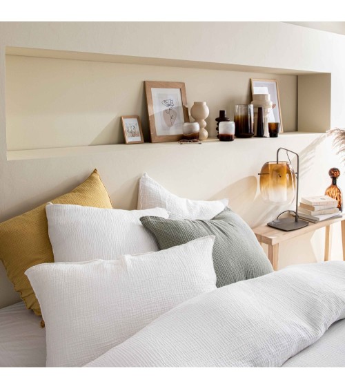 Découvrez notre collection linge de lit en gaze de coton « Simplement Gaufré », une gamme de linge de lit très facile dentretien et tendance cocooning. Pourquoi notre gaze de coton est unique ? Qualité exceptionnelle et durable : Notre gaze de coton (qualité double gaze, 155 g) a été confectionnée avec soin dans nos ateliers pour garantir la qualité dun linge de lit souple, qui ne se déforme pas et qui ne nécessite pas de repassage. Tendance : Laspect gaufré et aéré installe un style décontracté dans la chambre. Certifié OEKO-TEX® : Un label qui garantit labsence de substances toxiques et nocives pour la santé du consommateur et la protection de lenvironnement. Made in Portugal : Blanc Cerise a choisi le Portugal, réputé pour son savoir-faire dexception. Notre gaze de coton est fabriquée dans le respect des artisans et de lenvironnement. Confort : Ultra souple, notre gaze de coton assure délicatesse avec son tombé vaporeux. Housse de couette forme bouteille : Rabat qui permet de border et maintenir la couette au pied du lit. Terminé les boutons qui sarrachent au fil du temps !
