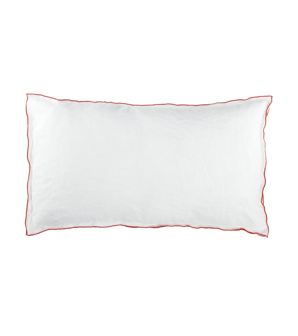Housse de coussin en lin lavé 33x57cm Blanc-orange