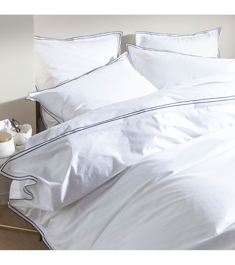 Housse de couette percale coton 200x200cm Blanc/indigo