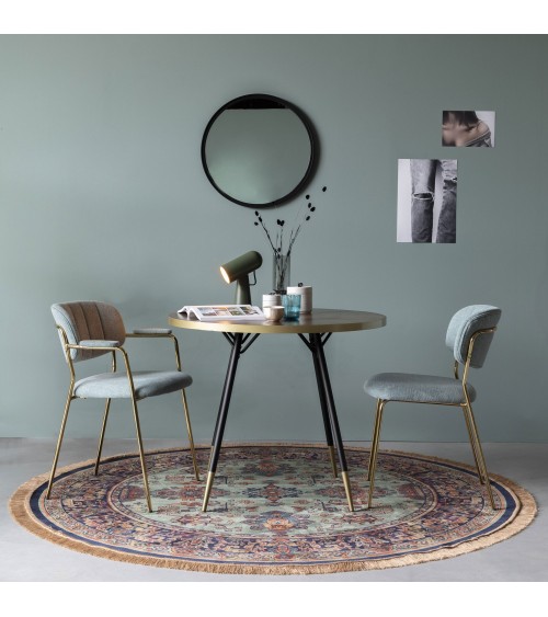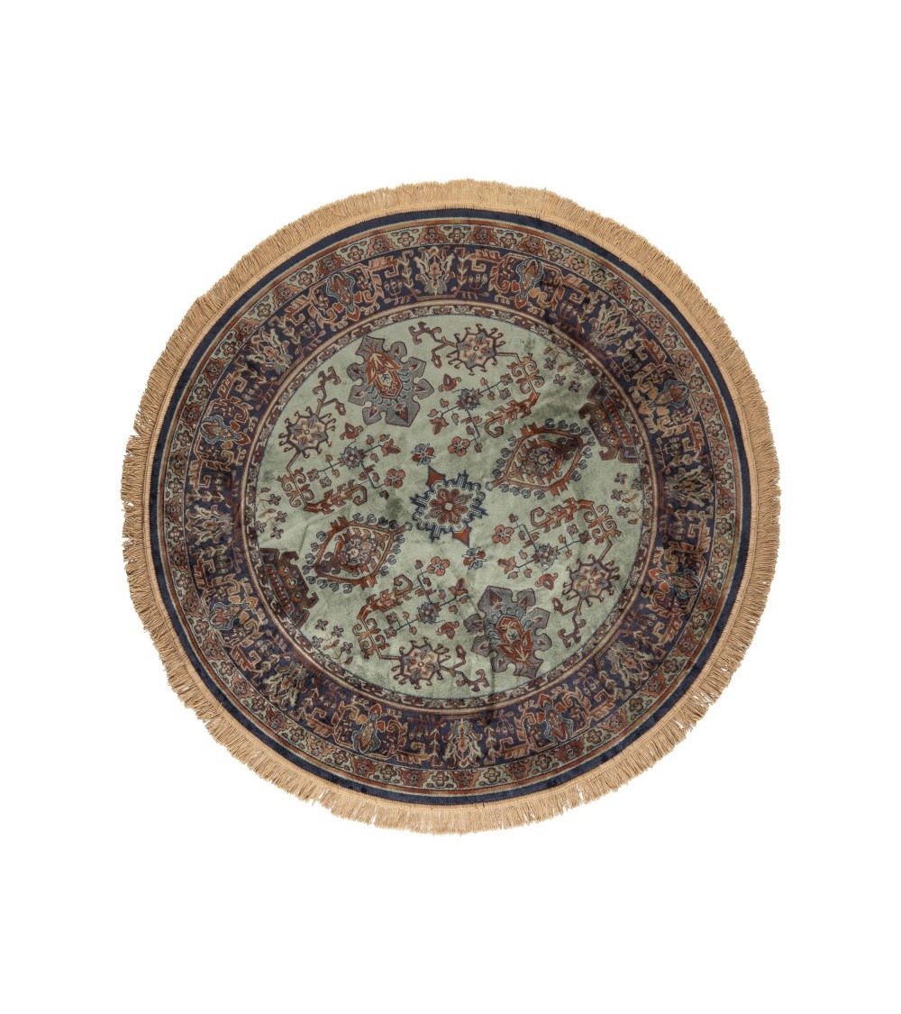 On renoue avec la tradition avec le tapis rond Raz ! Un modèle qui reprend le style des tapis persans, avec ses motifs caractéristiques et ses petites franges, et qui nous transporte dans les ambiances d'intérieur de nos familles C'est un classique qui a la vie dure, mais qui s'interprète aujourd'hui en mode vintage, pour donner du caractère à votre décoration d'intérieur.