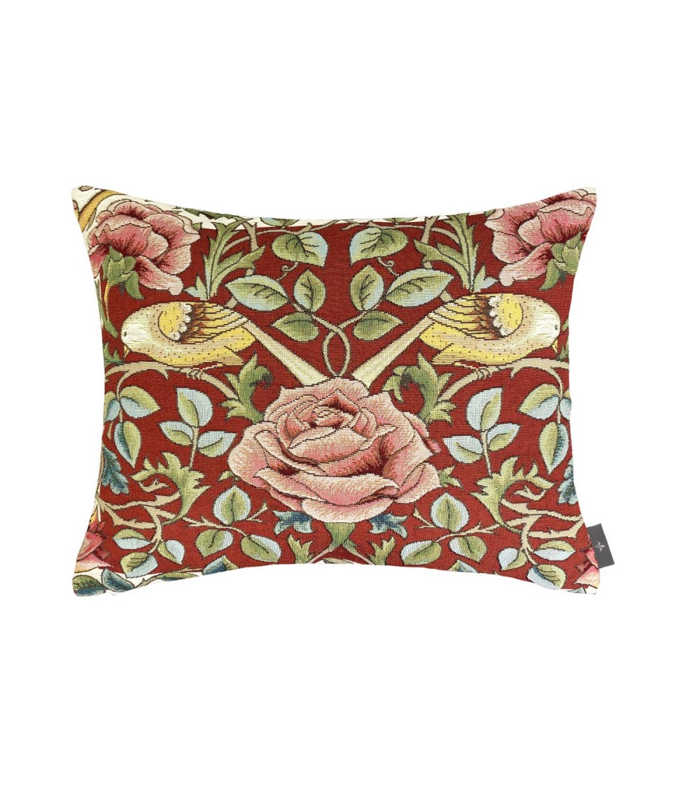 Coussin roses et oiseaux d'après w.morris made in france rouge 38x48