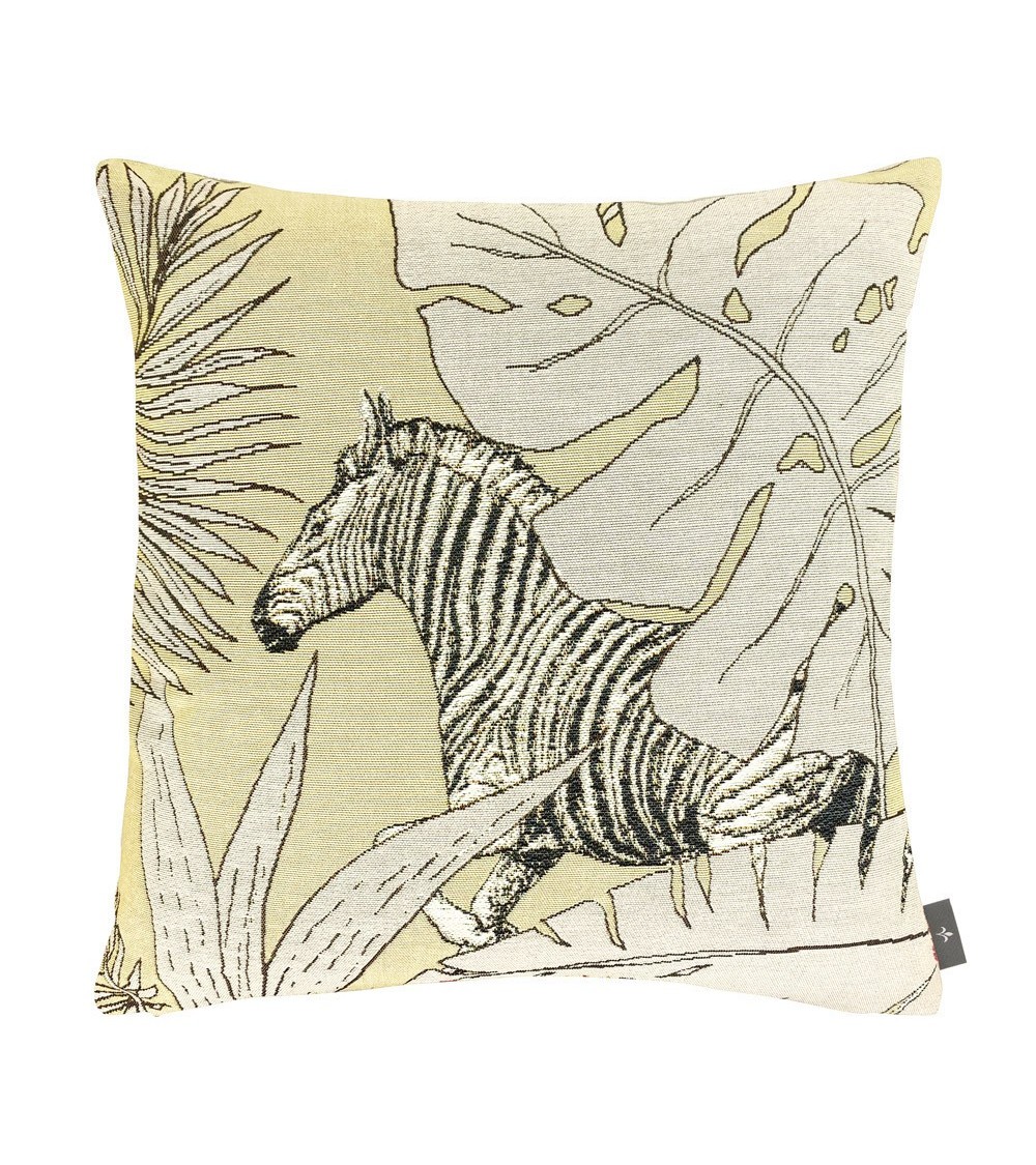 Housse de coussin Faune sauvage, Zèbre et feuillage Made in FranceDécouvrez les zèbres de la collection ''Faune sauvage'', sur un fond jaune pastel.''Avec le printemps, voici une gamme de teintes pastels toute en douceur. Venez découvrir les zèbres, panthères, éléphants et autruches qui pointent le nez hors de leur jungle graphique et renouvellent votre déco'' Patricia Composition : Intérieur : Inclus Style : Coussin tapisserie tissée en France Entretien : Lavage à sec Dimensions : Ouverture : Fermeture éclaire Le coussin est fourni avec son intérieur (garnissage inclus)