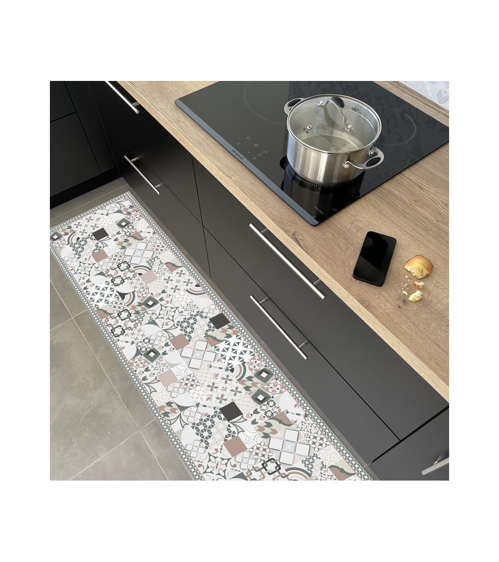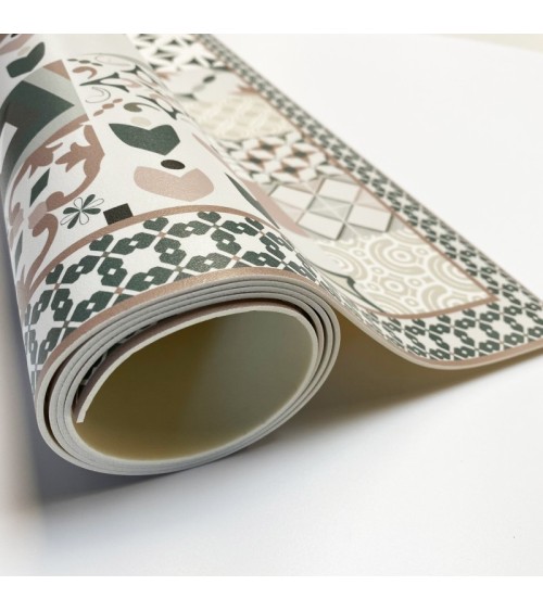 Tapis décoratif, idéal pour protéger et réchauffer le sol de votre cuisine, salle-de-bains, salon ou bien couloir. Composition : 85% PVC / 15% Polyester Résistance au glissement : Classe DS (norme EN 13893) Classement au feu : Bfl-S1 (norme EN 13501-1 - exigence M3 - retardant feu)
