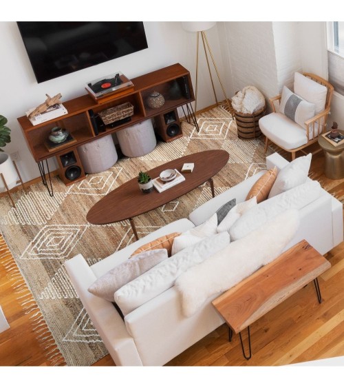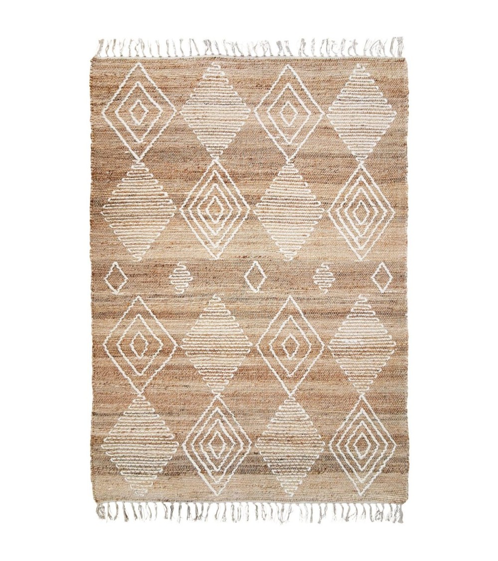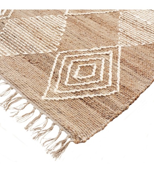 Tapis en chanvre avec motifs losanges en laine épaisse naturel 160x230