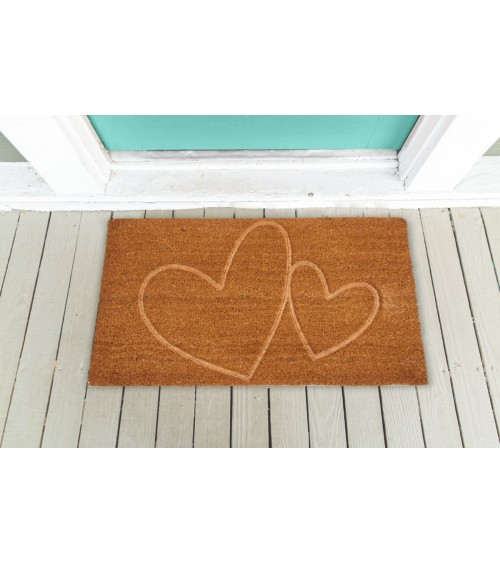 Paillasson coco intérieur extérieur 75 x 45 cm coeurs thermocompressé