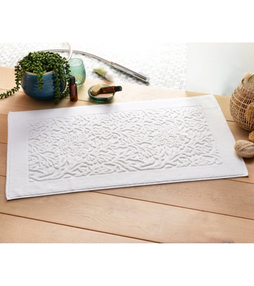 Mettez de la douceur dans la salle de bain avec ce tapis de bain blanc 60x100 en coton au motif original, tellement moelleux que c'est un plaisir d'y poser les pieds. Un tapis de bain créé par Becquet, bien épais (800 g/m2) et bien absorbant comme on l'aime. En pur coton tissé jacquard il est lavable à 40°.