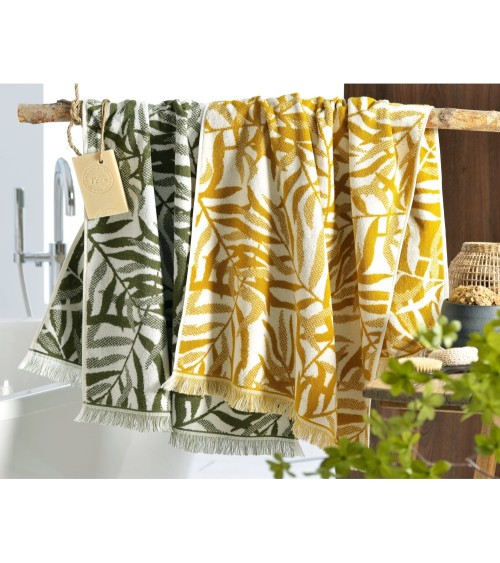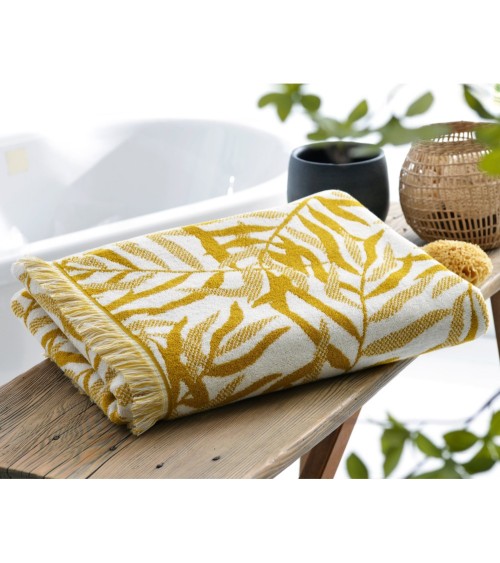 Vou aimerez la douceur de ce drap de bain jaune 70x140 en coton . Un drap de bain de qualité en pur coton tissé jacquard (500 g/m2) et imprimé d'un superbe motif végétal imaginé par Becquet. Un drap de bain doux, moelleux et bien absorbant dans lequel vous aurez plaisir à vous envelopper. Lavable à 60°.