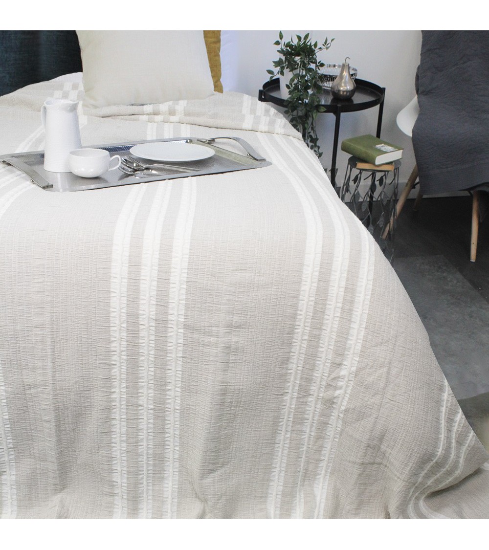 Couvre-lit en mélange coton/ lin (80% coton et 20% lin) stonewash. Lin corloris naturel Matière : 80% coton / 20% lin. Couleur dominante : naturel. Taille (largeur x longueur) : 230x250. Traitement : lavé. Type : rayé. Style : Unis. Finitions : Finition coins capuchons ; composition : 80% coton 20% lin. Grammage : 450. Entretien : Lavable à 40°C; Reportez-vous toujours à la vignette avec les instructions de lavage sur le produit.