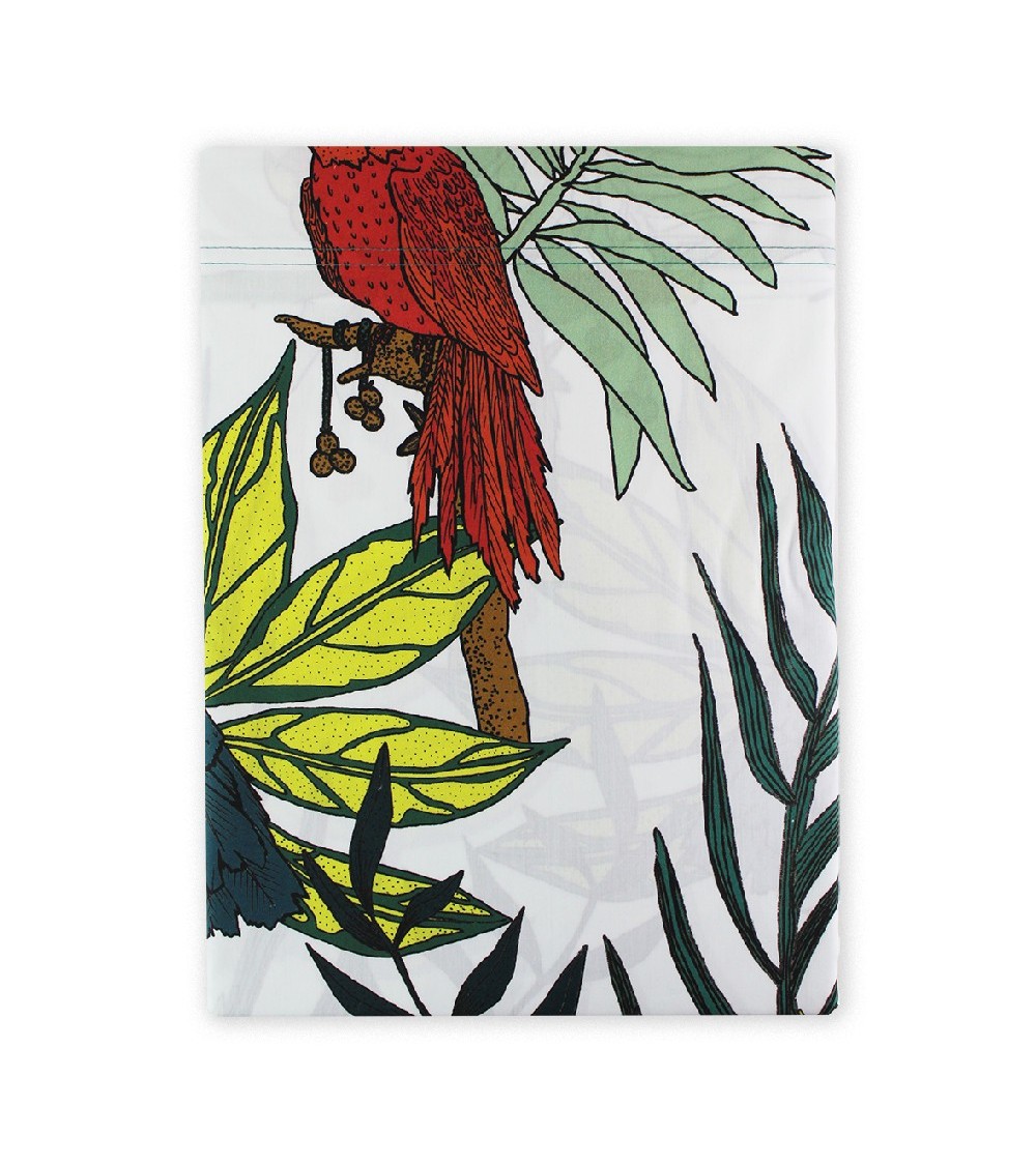Drap plat imprimé sur percale de coton 80 fils/cm², 100% coton. Motif all over. Parement sur le haut souligné par une double piqûre verte. Une forêt vierge jeune et tendance dans une palette de couleurs aux accents vintage. Matière : percale de coton peigné 80 fils/cm². Couleur dominante : blanc. Taille (largeur x longueur) : 270x300. Traitement : . Type : imprimé. Style : Fleurs et nature. Finitions : Composition : 100% coton ; parement sur le haut souligné par une double piqûre verte. Grammage : . Entretien : Avant la première utilisation, laver les articles seuls, à 30°C avec une demi-dose de lessive.Nous préconisons l'emploi de lessive liquide en respectant le dosage prescrit par le fabricant.