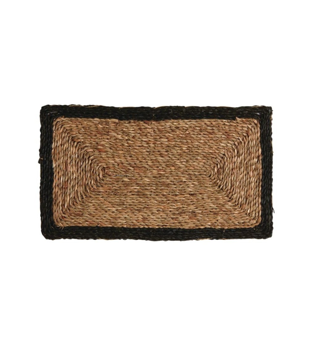 Aspect : Matériau principal : JacintheDimensions : Longueur (en cm) : 60,00Profondeur (en cm) : 35,00Épaisseur (en cm) : 1,00Autres caractéristiques : Poids (en kg) : 0,45 Paillasson en jacinthe naturelleBords en jacinthe teintée en noirRectangulaireFabrication artisanaleLongueur 60 cm , Largeur 35 cm