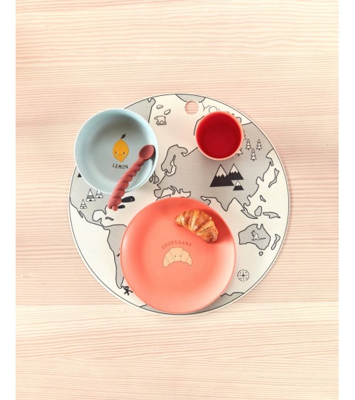 Rendez votre vaisselle mignonne et ludique avec le set de table World. Avec ses adorables illustrations et son tissu pratique, le set de table est parfait pour être utilisé par toute la famille.Le set de table est fabriqué en 100% silicone, imprimé. Pour le nettoyer, il est recommandé de l'essuyer avec un chiffon humide.Qualité : 100% siliconeDimensions : Diamètre 39 x H0,15 cm.