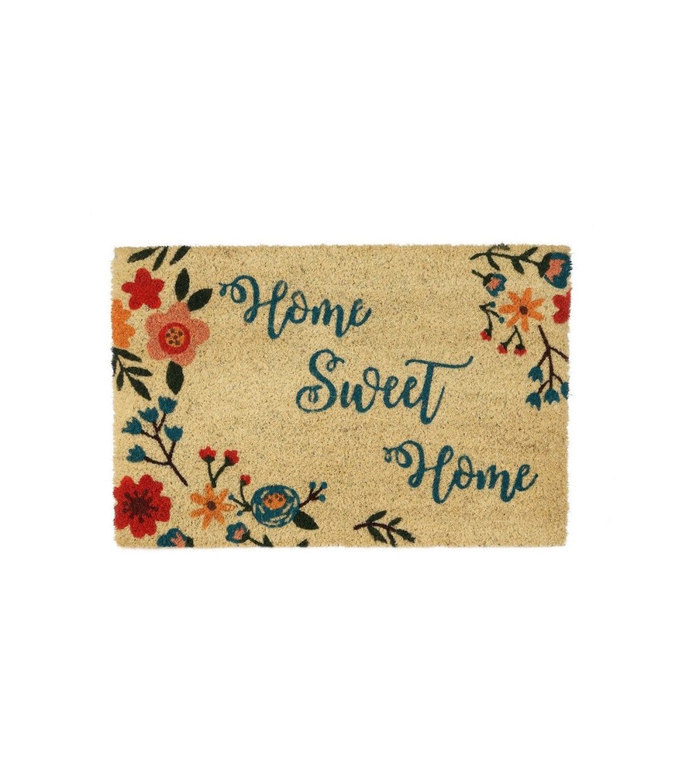 Paillasson en coco fleurs multicolores avec inscription home sweet home. Dimensions:60x40x1.5cmMatière: CocoCouleur: Multicolore