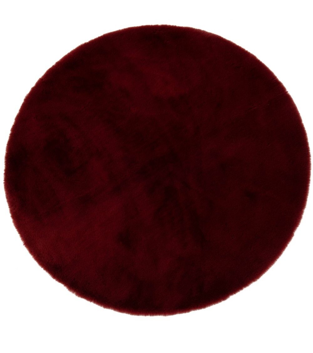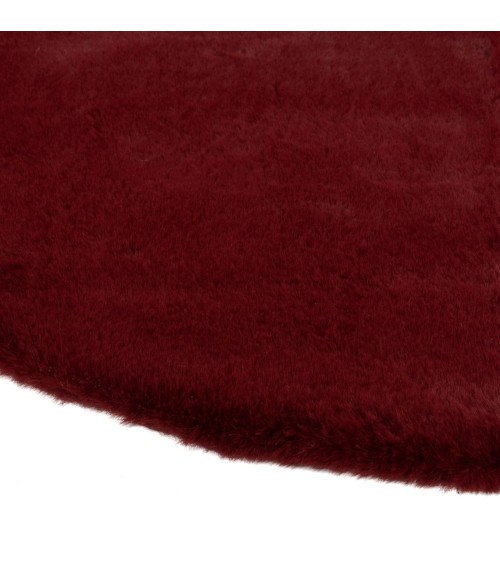 Tapis rond effet fourrure rouge, D90