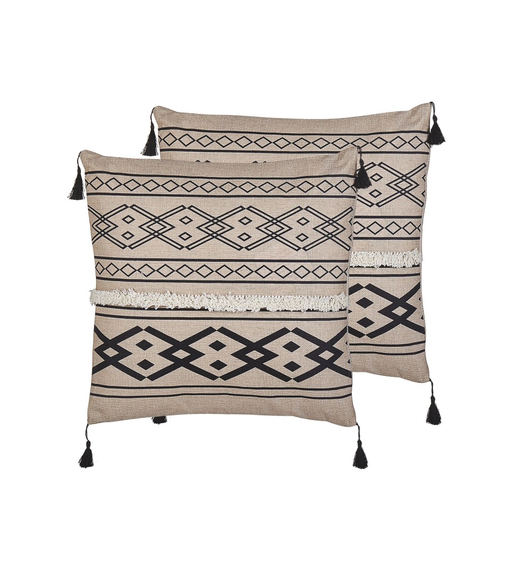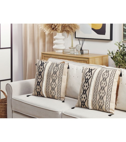 Lot de coussins décoratifs carrés avec pompons . Donnez un coup de jeune à votre intérieur avec ce lot de 2 coussins décoratifs à motifs géométriques. Il est fabriqué en polyester durable et facile d'entretien qui imite le lin. Les glands décoratifs attirent le regard et donnent au coussin un cachet particulier.Détails: Type de produit: Coussin décoratif Style: Boho Couleur principale: Beige Type de matière: Tissu Matière principale: Polyester Matière du rembourrage: Polyester Composition de la matière: 100% Polyester Forme: Carré Fabriqué à la main: Non Motif: Géométrique Dimensions: Profondeur: 45 cm Largeur: 45 cm Hauteur: 7 cm Poids du rembourrage: 400 kg Poids: 0.5 kg L`offre inclue: 2 x Oreiller Caractéristiques clés: Design moderne, Solution parfaite pour la chambre et le salon, Décoratif et fonctionnel, Matières de haute qualité, Facile à entretenir et extrêmement durable, Housses amovibles Informations d`assemblage: Ne nécessite pas d'assemblage Informations supplémentaires: Le coussin est scellé sous vide pour le transport. Veuillez retirer le coussin de l'emballage et le laisser reposer pendant 24 heures jusqu'à ce qu'il atteigne sa pleine densité. Conseils de maintenance: Polyester: 1.Ne pas sécher en machine et ne pas repasser 2.Lavez à la main ou sélectionnez un cycle de lavage délicat (30 °C). Suivez en premier lieu les instructions du fabricant sur l'étiquette.
