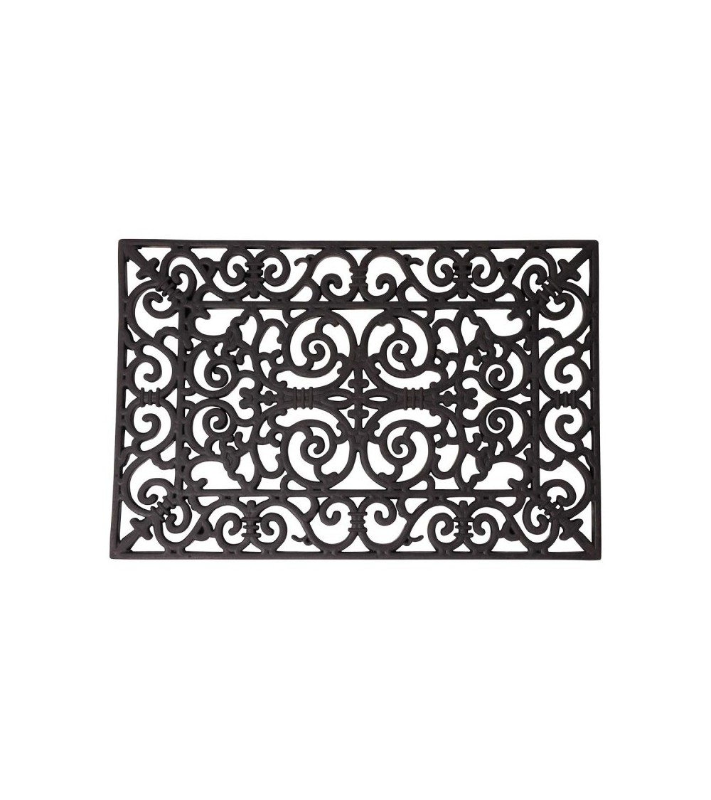 Ce tapis en caoutchouc rectangulaire possède de magnifiques ornements. Ce tapis en caoutchouc a un design victorien classique avec des boucles gracieuses. L'avantage d'un paillasson entièrement en caoutchouc est qu'il se nettoie facilement en le rinçant sous un robinet ou un tuyau. Il peut s'utiliser en intérieur comme en extérieur.