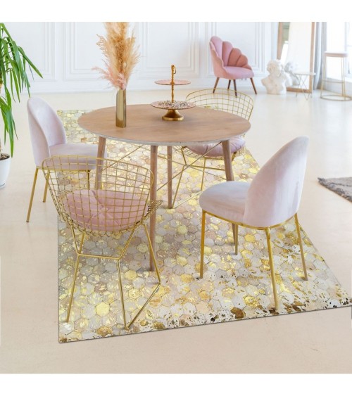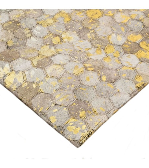 CUIR DIAMOND GOLD est un tapis Haut de Gamme alliant un patchwork d'hexagones de cuir et d'éclats dorés. Il est idéal pour apporter une touche d'élégance, de luxe et de chaleur à votre intérieur.Composition : 100% cuirEpaisseur : 10 mmFabrication : ArtisanaleQualité : Entretien tapis facile, aspirateur ou chiffon humideQui sommes-nous ?Nous sommes une PME française spécialisée dans la décoration de la maison depuis plus de 40 ans.Tapis, coussins, rideaux, voilages, plaids et stickers, nous concevons et fabriquons des articles dans notre usine du Loiret et parcourons le monde pour trouver les meilleurs produits, toujours au meilleur prix !Nos articles sont stockés dans nos entrepôts en région Centre Val de Loire sur 10 000 M2.La satisfaction de nos clients est notre priorité, aussi accordons-nous un délai de 60 jours pour retourner son article en cas d'insatisfaction.Soucieux des enjeux sociaux et environnementaux, The Deco Factory privilégie les tapis labellisés GOTS (Global Organic Textile Standard), OEKO-TEX et AZO FREE.