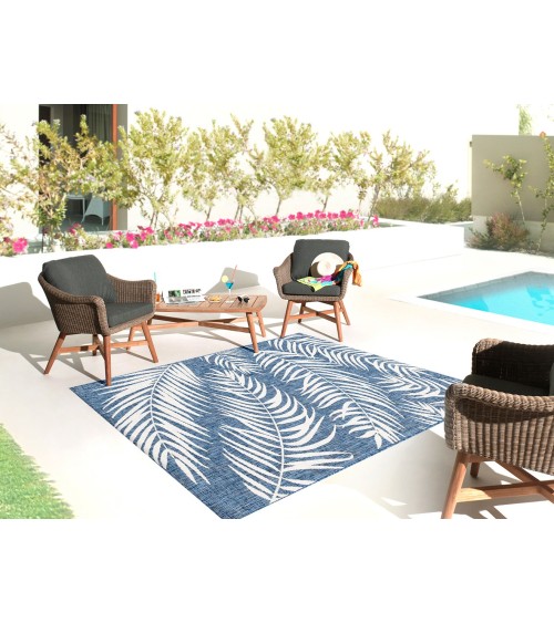 Relookez votre extérieur avec le tapis d'extérieur en polypropylène tissé bleu océan et motif écru. MOA est l' élément indispensable pour cet été, ce tapis transformera votre coin détente en une véritable jungle urbaine. Son petit plus, il convient aussi bien pour l'intérieur que l'extérieur. Pendant la saison froide, laissez votre textile bien au chaud dans un endroit sec. Pour préserver plus longtemps votre textile, pensez également à le rentrer en cas de pluie. Le saviez-vous ? Pendant la saison froide, laissez votre tapis bien au chaud dans un endroit sec. Nos tapis extérieurs en polypropylène sont recyclables, résistant aux UV et à la pluie. Le polypropylène est une fibre synthétique non nocive pour l'environnement. Elle à une résistance élevée à l'usure et résiste très bien à la chaleur. Cette matière est antistatique, elle ne perd pas ses fibres et elle n'attire pas la poussière, ce qui veut dire qu'elle est facile à nettoyer.