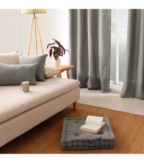 Coussin de sol uni en pur coton gris 50 x 50