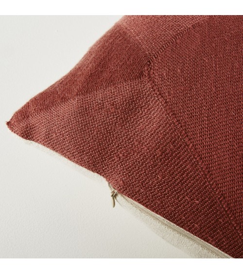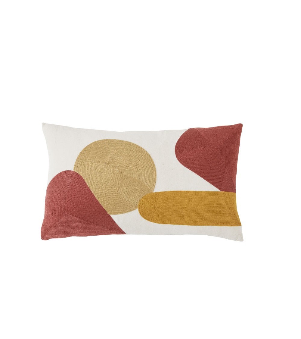 Coussin en rayonne et lin brodés écrus, jaunes, terracotta 30x50