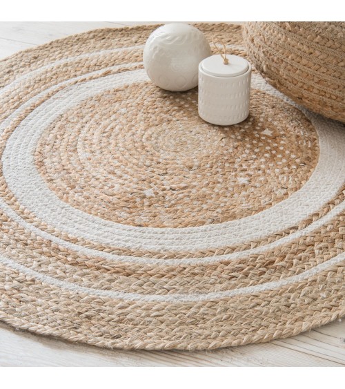 Tapis rond en coton blanc et jute D.90cm LEIGH