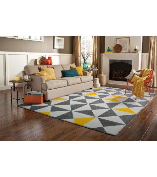 Tapis FORSA géométrique jaune 120x160cm - Hauteur fil 14 mm - 100% polypropylène